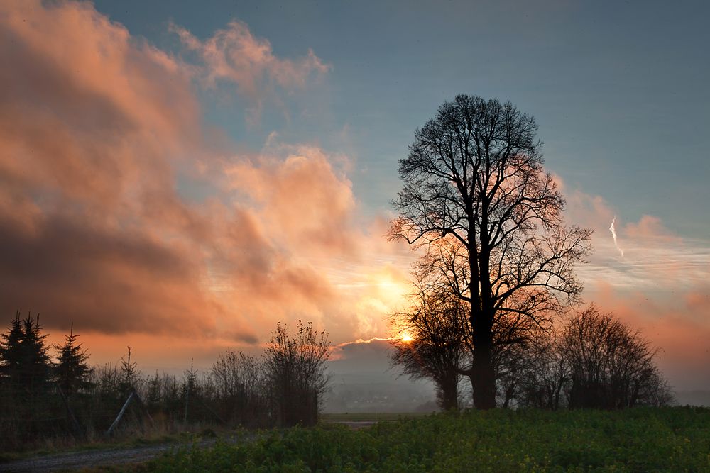 Sonnenaufgang an der Napoleonlinde in Olbersdorf