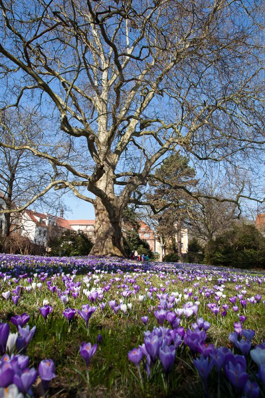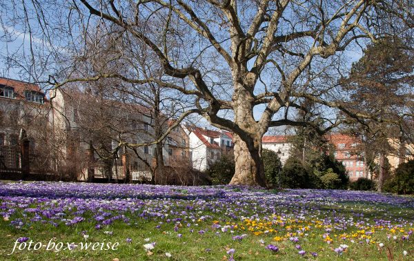 Die Krokuswiese unter der uralten Platane am Grünen Ring war heute ein vielbesuchtes Fotomotiv in Zittau.
