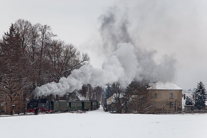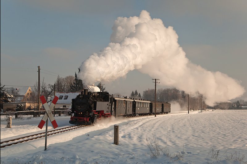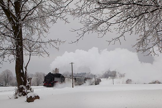 Der historische Reichsbahnzug mit der 99 731 bei -15 Grad in Richtung Zittauer_Gebirge und in Jonsdorf