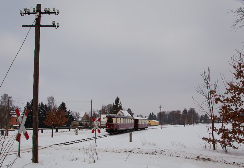 Der Zittauer Schmalspurtriebwagen VT 137 322 am Haltepunkt Olbersdorf-Niederdorf